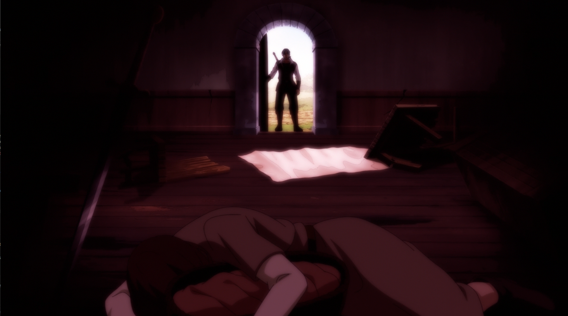 >字幕「膝に矢を受けてしまってな」